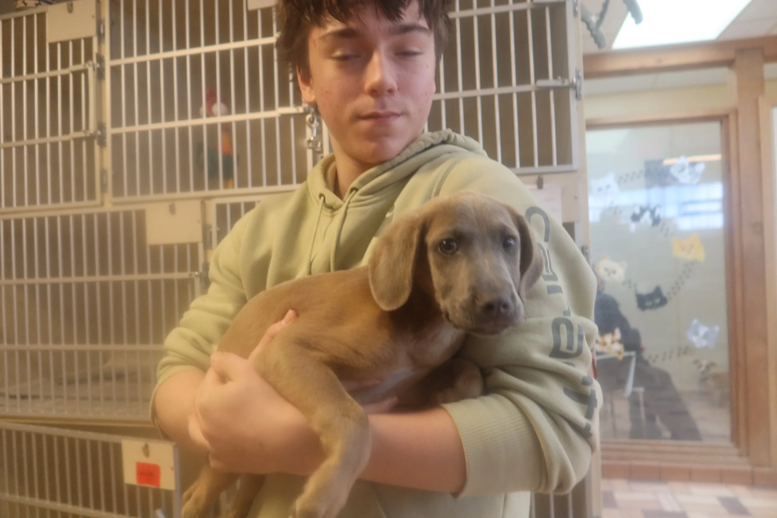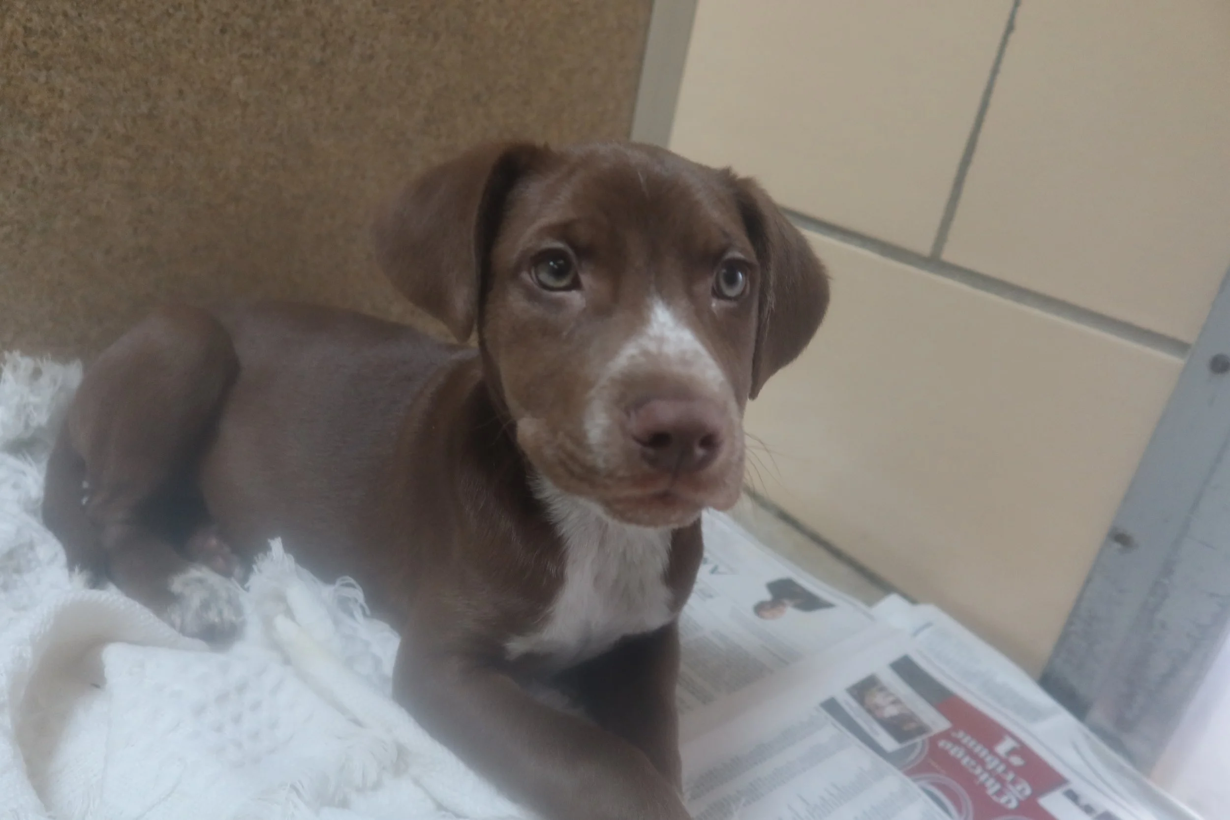 Lucas is a 3 mos old neutered male Pointer mix. OK with children and other dogs. If you have the time to devote toa puppy he might be perfect for you. for adoption at the TLC Animal Shelter, Homer Glen