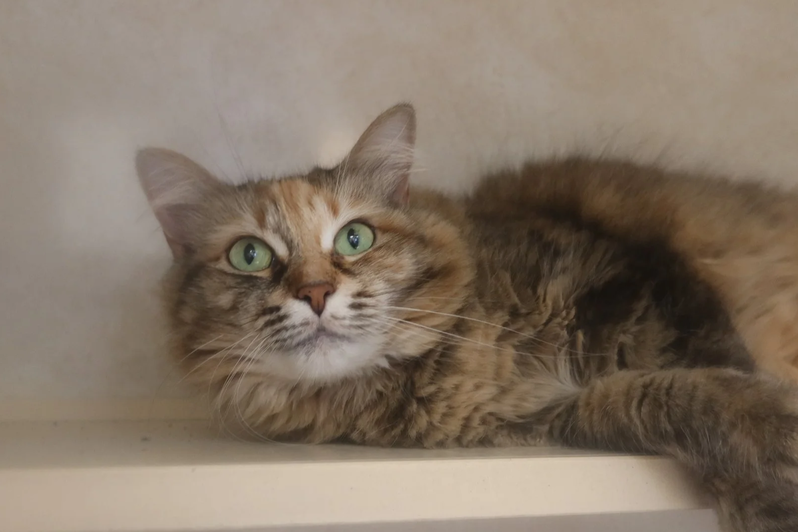 Zokko is a one-year-old domestic medium-haired kitty. Look at th ose gorgeous gold eyes! I think he believes he is undercover! He is shy but gentle. He is ok with older kids. he is litterbox trained. Up for adoption at the TLC Animal Shelter, Homer Glen, IL. Video n the TLC Facebook page