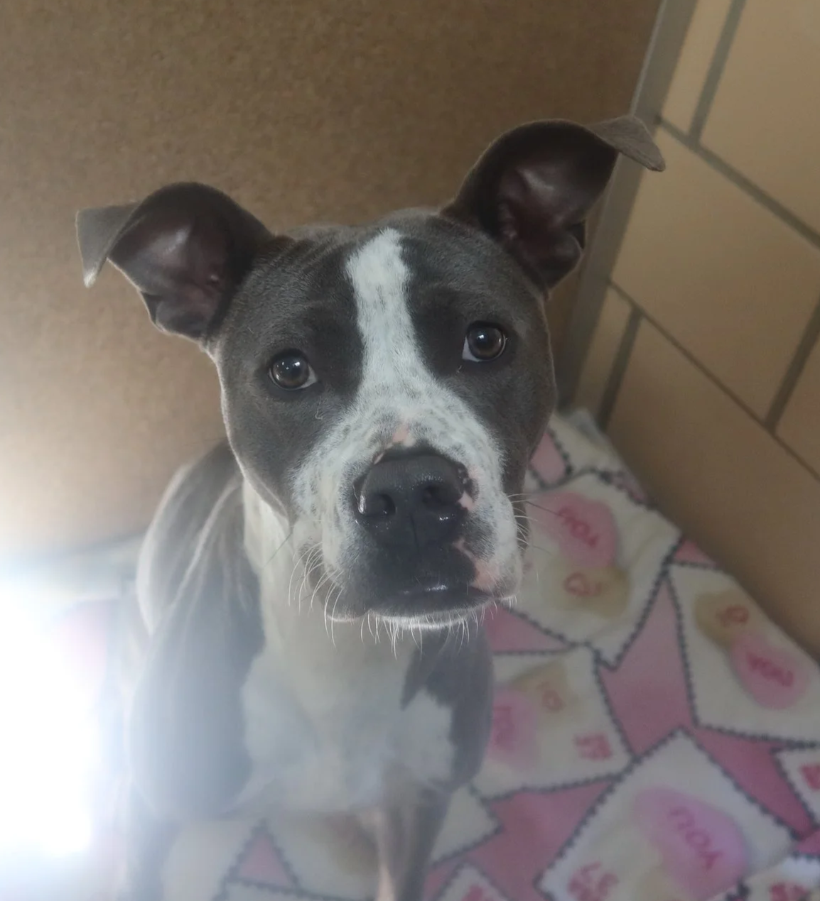 Loki is a beautiful, neutered male mixed American Bulldog. He loves people and is ok with other dogs. He is housebroken and knows sit, shake give other paw and spin so you could take him to spin class with you if you are into that : ) He has a great personality up for adoption at the TLC Animal Shelter Homer Glen, il. Video on the TLC Facebook page.
