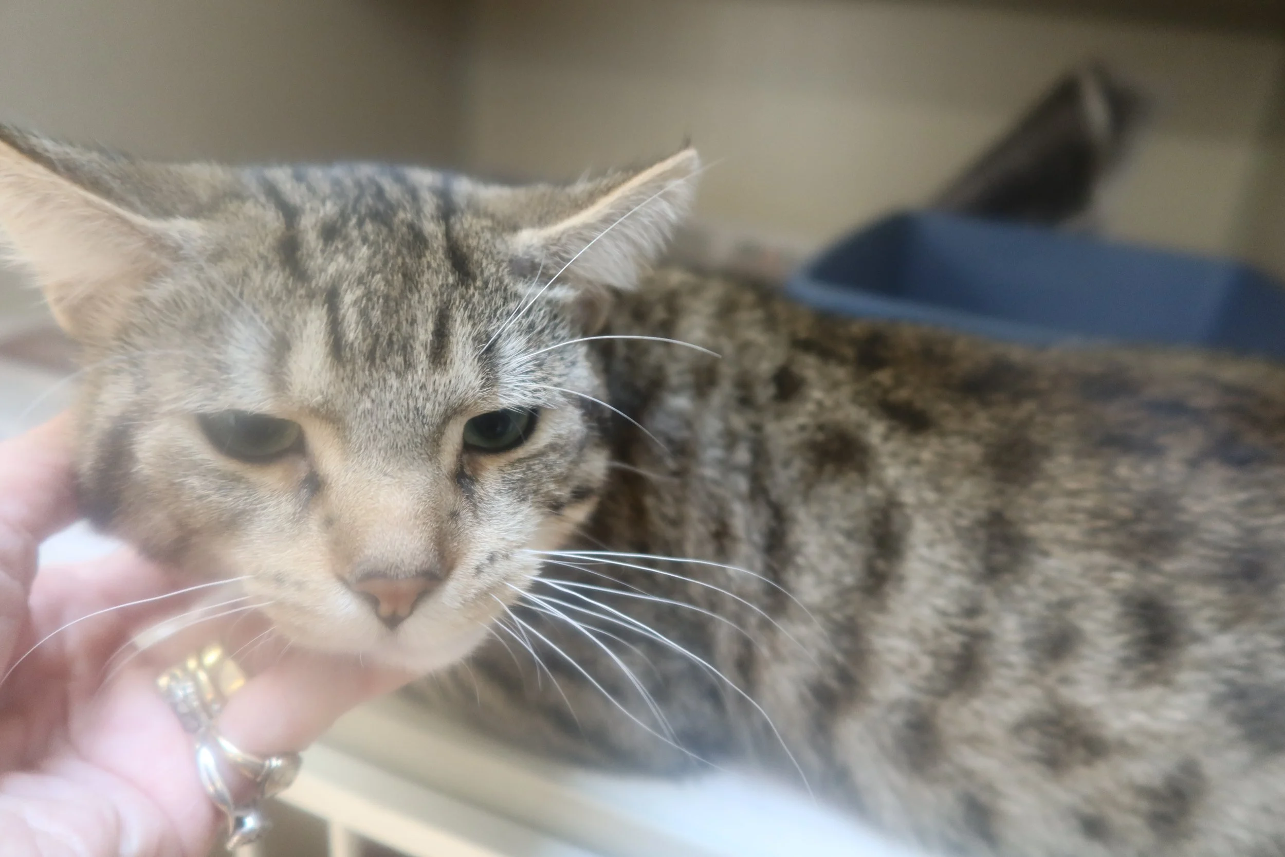 This Is beautiful olive. She is a 7 month old female tabby. She is a little shy at first but warms up quickly. She would be better with older children. She is litter box trained for adoption at the TLC Animal Shelter Homer Glen Illinois. Video on the TLC Facebook page