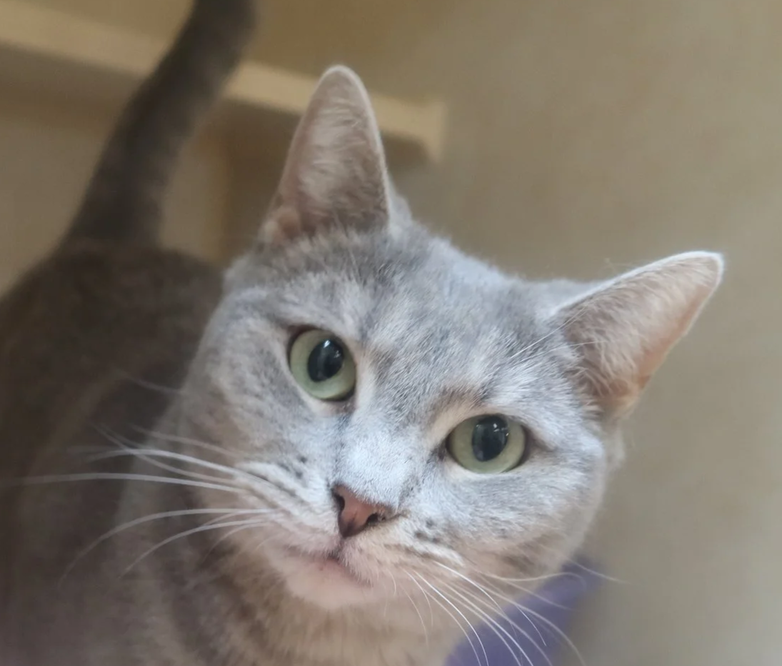 Miss Daisy is a gorgeous female Russian Blue mix. (sorry I did not get her age) . She is good with children cats. She is litterbox. Up for adoption at the TLC Animal Shelter Homer Glen Illinois. Video on the TLC Facebook page