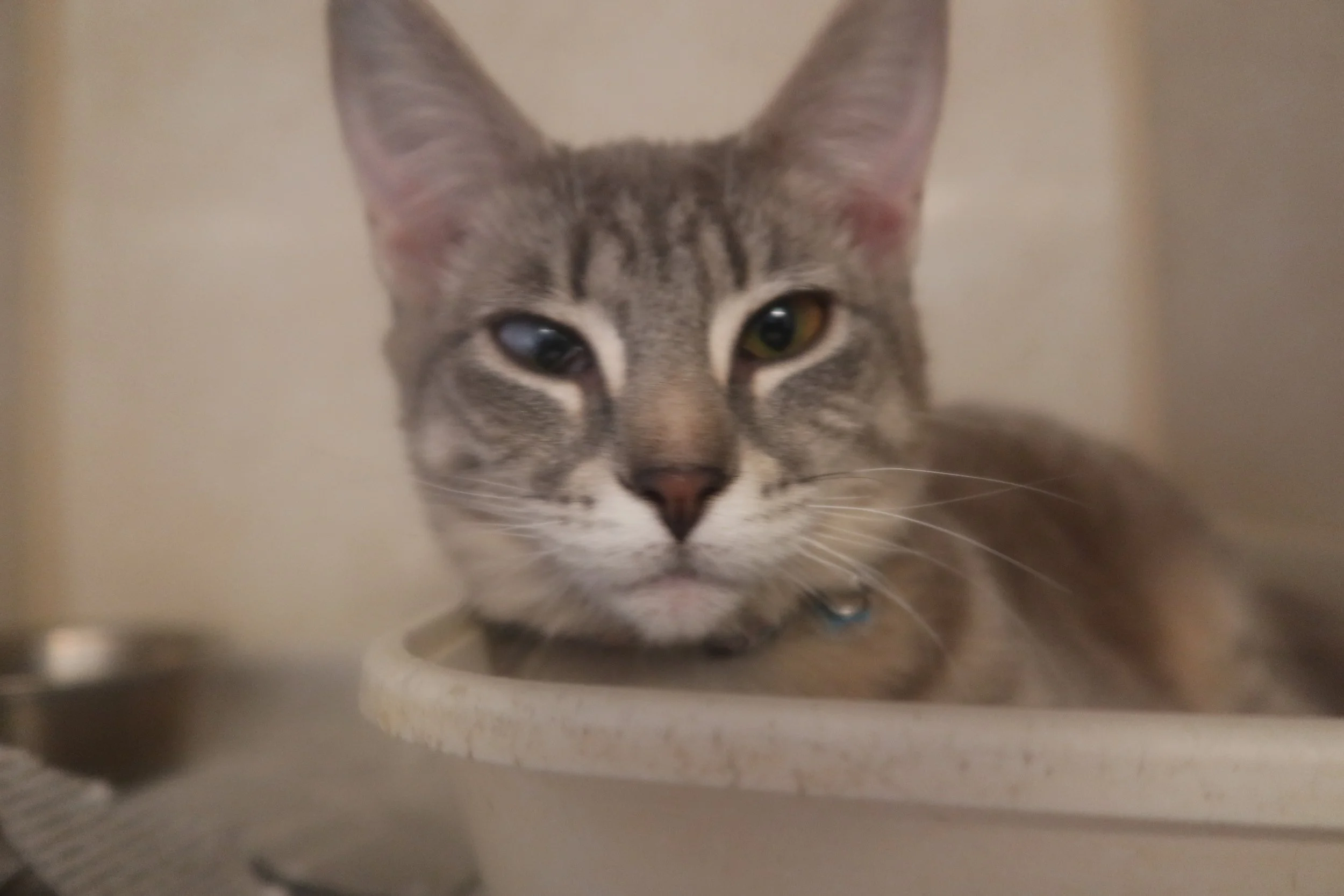 Kit and Kat are sisters. They are very sweet about 6 mos old and they both have a kitten cataract on opposite eyes, but that does not hinder them at all. They are both litter box trained. For adoption at the TLC Animal Shelter, 13016 W 151st Street, Homer Glen, Illinois. Video on the TLC FAcebook page